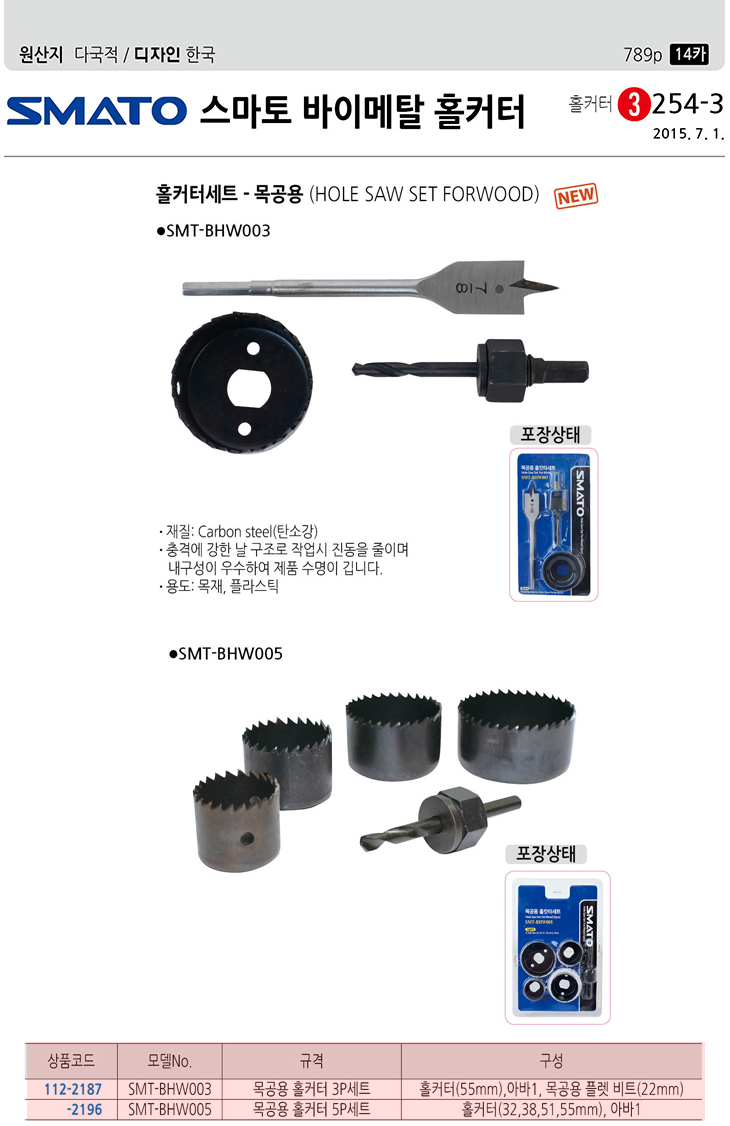 [½º¸¶Åä] ¸ñ°ø¿ë ȦĿÅͼ¼Æ®(SMT-BHW005, ȦīŸ:32/38/51/55ÆÄÀÌ+¾Æ¹Ù1°³)(Wood Hole Saw Set)