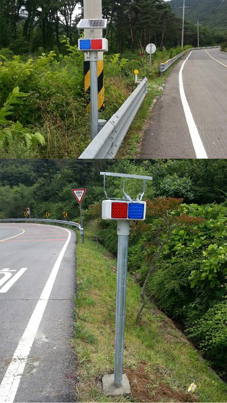 Æò¸é °î¼±ºÎµî ½Ã°è°¡ ºÒ·®ÇÑ Àå¼Ò¿¡¼ »ç°íÀ§Çè Áö¿ªÀ» ¿îÀüÀÚ¿¡°Ô ¾Ë¸®±â À§ÇÑ ½Ã¼³·Î, ž籤 °æ±¤µîÀº ½Ã¼±ÁýÁßÀÇ ±â´É°ú µ¿½Ã¿¡ »ç°íÀ§Çè Áö¿ª Á¤º¸¸¦ Çü¼ºÈ½ÃÄÑ ¿îÀüÀÚ¿¡°Ô Àü´ÞÇÏ´Â ±â´ÉÀ» °¡Áö°í ÀÖÀ¸¸ç, ƯÈ÷ ž籤 °æ±¤µîÀº °í¼ÓÁ¡¸ê ¹× ÀÚÀ¯Á¡¸ê·Î ¾ß°£ ½ÃÀμºÀ» ±Ø´ëȽÃÄÑ Á¤¸é ¹× Ãø¸é ½ÃÀμºÀ» µ¿½Ã¿¡ È®º¸ÇÒ ¼ö ÀÖ½À´Ï´Ù.