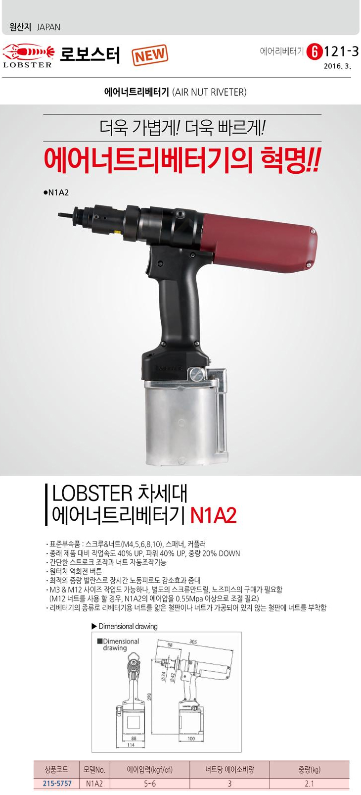[LOBSTER] ¿¡¾î ³ÊÆ® ¸®º£Åͱâ(N1A2, M4/M5/M6/M8/M10 ½ºÅ©·ç³ÊÆ®, ½ºÆÐ³Ê/Ä¿Ç÷¯)(Air Riveter)