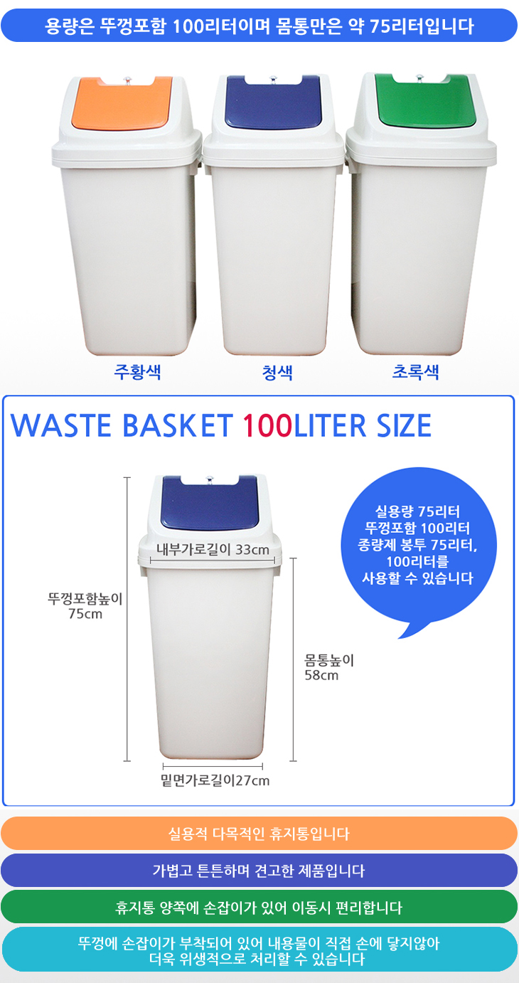 [WT] »ç°¢ ÃÊ´ëÇü ÈÞÁöÅë/¾²·¹±âÅë(100¸®ÅÍ, ³ôÀÌ:750x¹Ø¸é270mm)