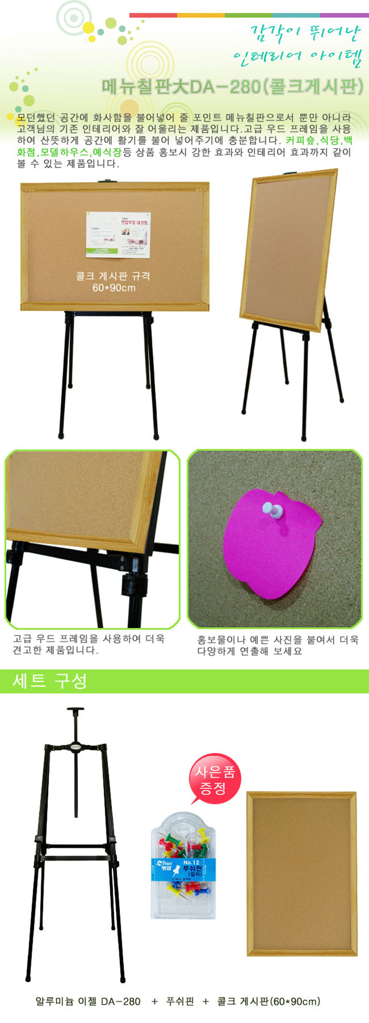 [ÀÏÁø] ¸Þ´ºÄ¥ÆÇ(DA-280, ´ëÇü, ¾Ë·ç¹Ì´½ÀÌÁ©+ÄÝÅ©°Ô½ÃÆÇ:900x600mm)