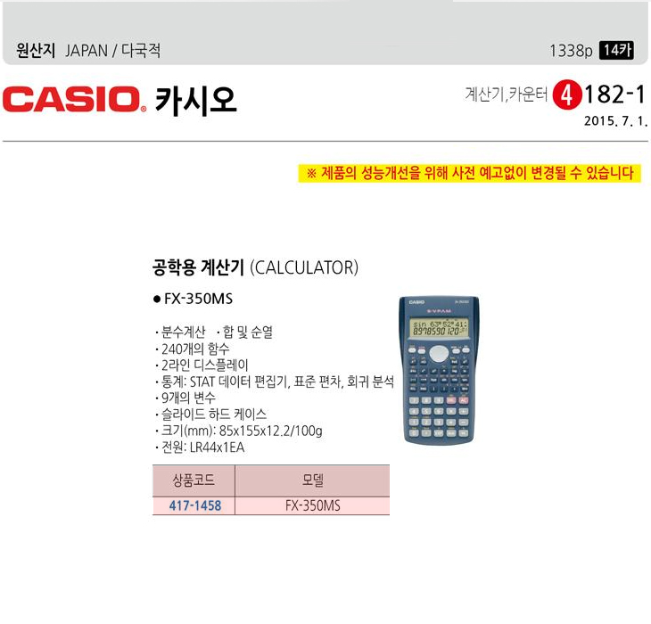 [Ä«½Ã¿À] °øÇпë°è»ê±â(FX-350MS, 240°³ ÇÔ¼ö)(Calculator)