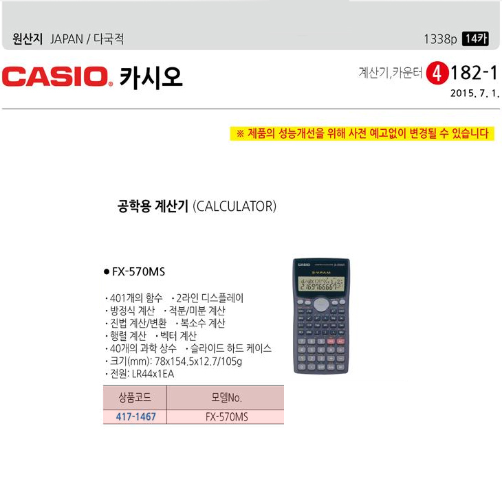 [Ä«½Ã¿À] °øÇпë°è»ê±â(FX-570MS, 401°³ ÇÔ¼ö)(Calculator)