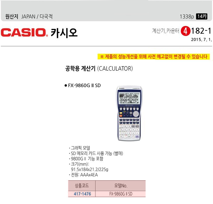 [Ä«½Ã¿À] °øÇпë°è»ê±â(FX-9860G II SD, 2900°³ ÇÔ¼ö, SDÄ«µå »ç¿ë°¡´É )(Calculator)