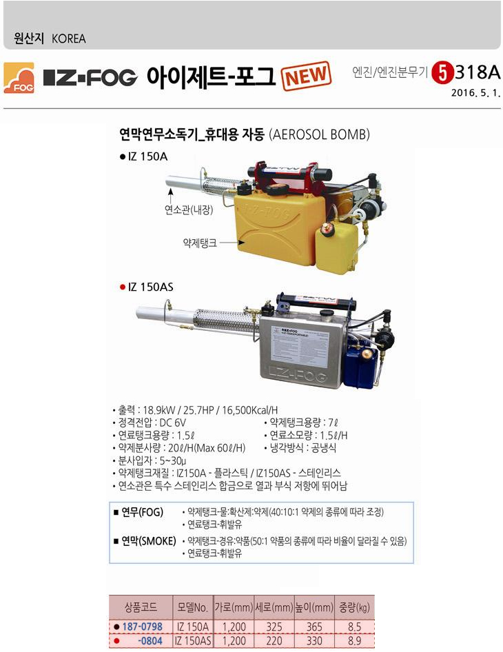 [IZ] ÈÞ´ë¿ë ÀÚµ¿ ¿¬¸·¿¬¹« ¼Òµ¶±â(IZ-150AS, ¾àÁ¦ÅÊÅ©:½ºÅ×Àθ®½º, ¿¬¹«/¿¬¸·/Ãʹ̸³ÀÚ »ì±Õ »ìÃæ ÈÞ´ë¿ë¹æ¿ª±â)(Aerosol Bomb)